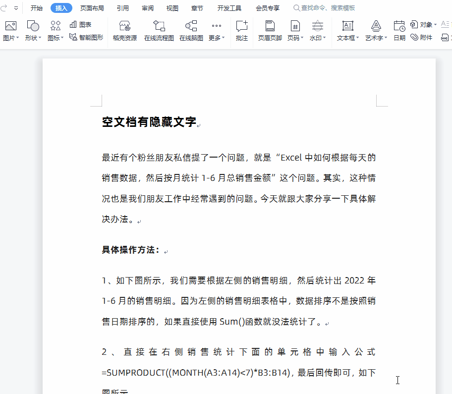 方法二:文檔最后有隱藏文字