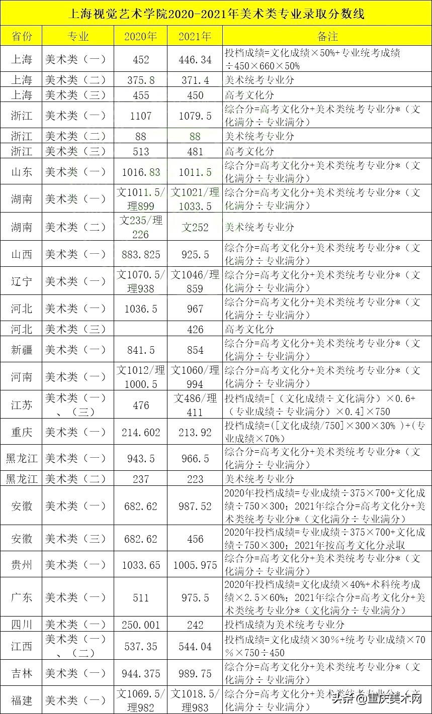 上海視覺藝術學院2021年美術類在19個省份招生,根據錄取分數排序,貴州省的錄取線剛好是中位數。