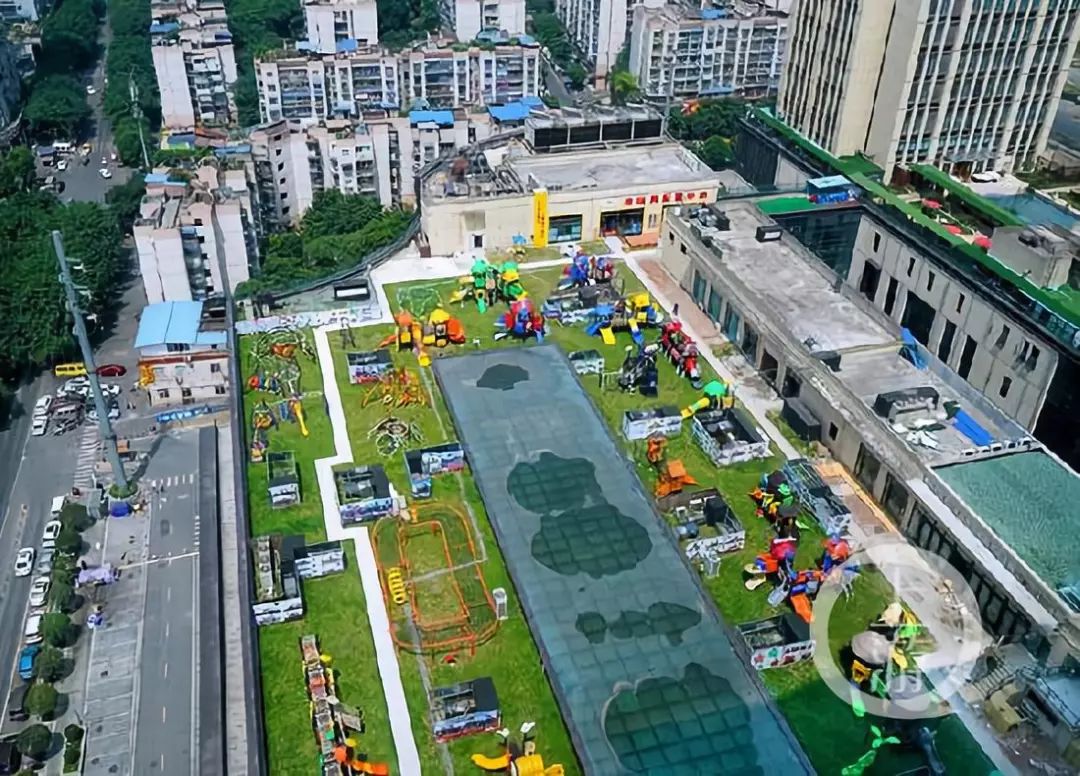 ▲江北盤溪立交橋旁的免費樓頂 “兒童樂園”
