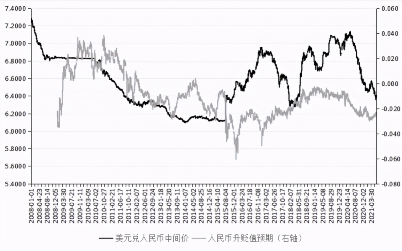 2021年第二季度人民幣對美元匯率出現顯著升值的原因有如下三點:一是美元指數貶值。2021年3月31日至5月31日,美元指數由93.18下降至89.84,貶值了3.6%。美國長期國債利率的回調,及全球經濟政策不確定性有所回落,是本輪美元指數回落的重要原因。二是短期證券投資基金涌入,尤其是北上資金大量流入中國A股市場,推動了人民幣對美元匯率的升值。2021年4月1日至5月27日,北上資金凈流入A股市場規模達到1037億元,既超過了2021年一季度的999億元,也接近2020年全年累計凈流入的一半。三是新冠疫情影響的錯位,提升了中國企業在全球產業鏈上的重要性。2021年一季度,中國貨物貿易順差為1171億美元,顯著高于疫情前的2019年一季度。2021年4月,中國貨物貿易順差達到429億美元,顯著高于2021年一季度月度均值。