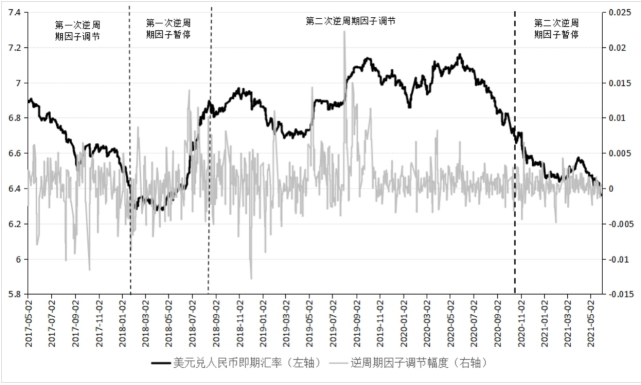 圖2 人民幣匯率走勢與逆周期因子調節分析圖