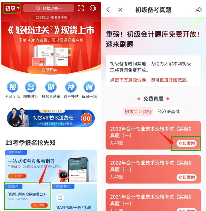簡單三步操作,即可免費獲得數百道精選歷年真題,考生再不會有“爛題目”“刷題慌”的困境。2023年初級會計職稱備考期縮短,考生們也將備考啟動了倍速進度,“學習做題同步”成為了初級考生們“雙管齊下”的備考方式。課已經備齊了,題不能拖慢進度。還在焦急“盲搜”習題的考生們,趕快按照上面的步驟領起來吧。