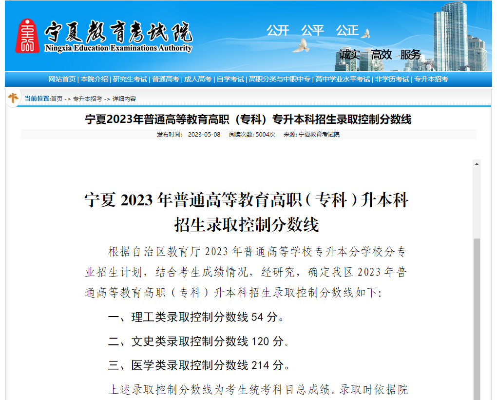 有職業技能測試的高職(專科)專業錄取控制分數線