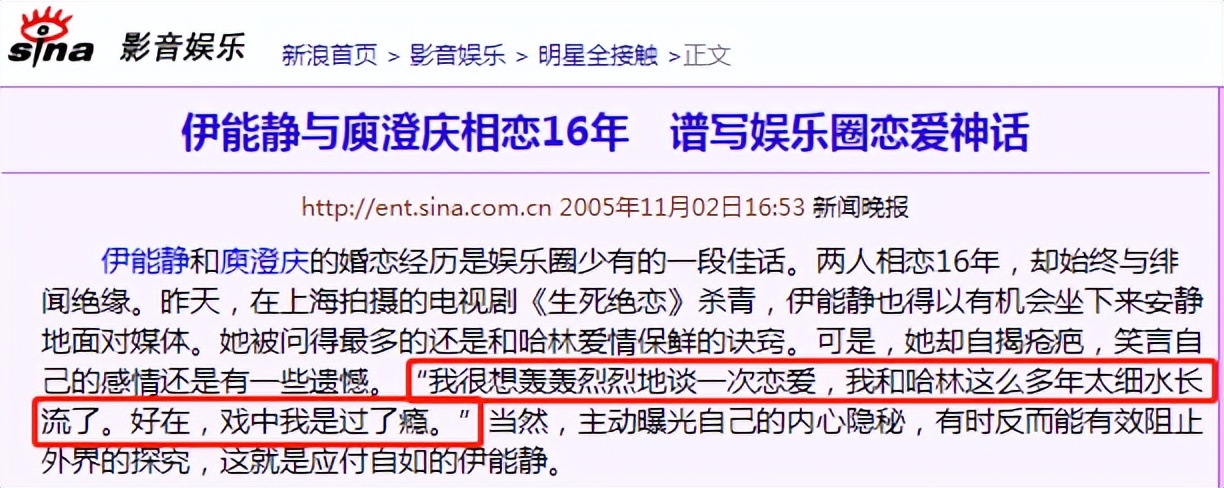 她曾表示,自己與庾澄慶的愛情太平淡了,她渴望的是轟轟烈烈的愛情。
