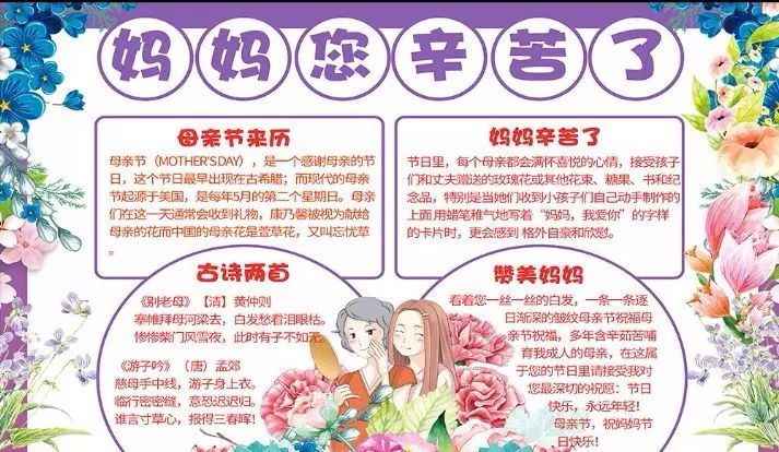 今他,老師就給大家分享一組母親節手抄報,歡迎大朋友小朋友們一起參考,表達我們對母親的感恩之情。