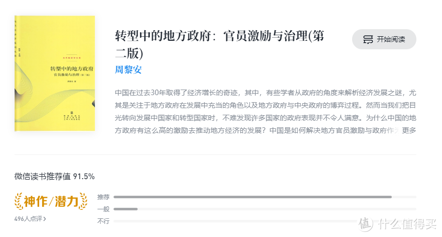 說實話,如果在去年你跟我說我會看這本書并推薦這本書,我一定覺得你是瘋了。但是隨著閱讀,這本書就這么自然而然的來到了我的視野。整本書如果要提煉關鍵詞,那就是“行政發包制”與“政治競標賽”兩個詞。看完《置身事內》后的感覺是對于政策有種模模糊糊的感覺,似乎知道了什么,又似乎什么都不知道,而看完這一本書會有一種豁然開朗的感覺。