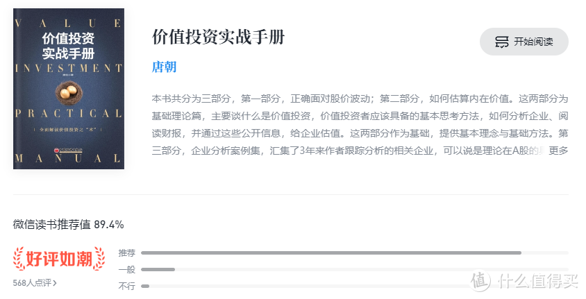 投資類是我今年閱讀的重點了,畢竟是最開始閱讀的原因。在投資類書籍中,我今年偏好閱讀關于所謂價值投資的書籍,上半年的時候寫過一篇關于夾頭書籍的推薦,全年下來,我最推薦的投資類書籍應該是唐朝的兩本書——《價值投資實戰手冊:全面解讀價值投資之”術“》與《手把手教你讀財報》