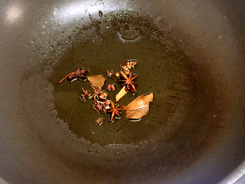 3、炒鍋注油,放香料小火炒香