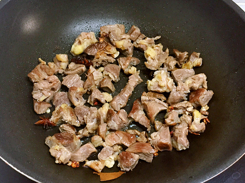 4、放入牛肉繼續翻炒三分鐘左右