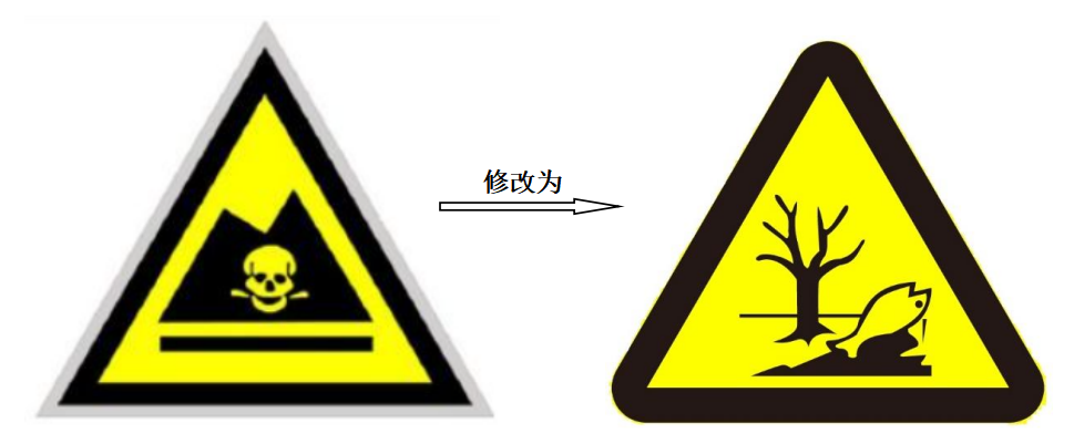 醫療機構需要更新醫廢暫時貯存場所的危險廢物警示標志。上述文件涉及將固體廢物貯存、處置場圖形標志中表示危險廢物貯存、處置場的警告圖形符號進行了修改,如圖3所示,由傳遞急性毒性警示信息的“骷髏”改為“枯樹和魚”,更為直觀的傳達“全面防范生態環境風險”的信息。