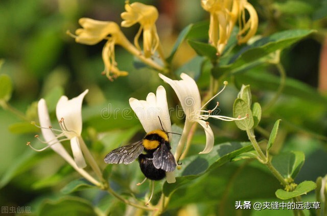 金銀花因一枝二花,一花色黃、一花色白,在陽光下的照耀下,宛如金銀,故名曰“金銀花”。
