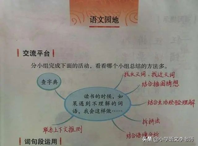 導讀歡迎關注我,我是小學教師,自由撰稿人,熱愛讀書與寫作。第二單元主題是“運用多種方法理解難懂的詞語”、“學習寫日記”。交流平臺學生讀書的時候,經常遇到不理解的詞語,采取的解決方法主要有1.分合法;2.