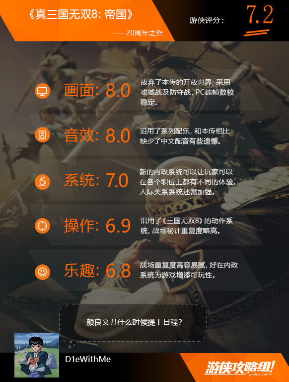《三國無雙》的帝國系列最早要追溯到2004年3月18日發售的《真三國無雙3:帝國》,相比本傳帝國系列在原有的游戲基礎上融合了RPG和SLG元素,讓玩家可以在享受“一騎當千”的爽快砍殺的同時還能運用戰略和戰術來達成統一天下的目標。時間回到2020年9月27日光榮在《真三國無雙》20周年紀念節目上公布了周年紀念作品《真三國無雙8:帝國》(下文簡稱358E),雖然不是萬眾期待的《真三國無雙9》但官方宣布舍棄本傳飽受爭議的開放世界設定還是讓不少玩家拍手叫好,在經歷了一次跳票后358帝國終于在2021年12月23日正式發售,下面就讓我們一起看看本作究竟如何吧!