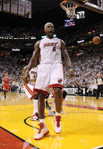 熱火暫停過后韋德上籃被封蓋,羅斯反擊暴扣皇帝又遭搶斷,公牛順勢將領先優勢擴大到兩位數。盡管羅斯手感奇差前8投只1中,但波什的徹底啞火同樣讓熱火失去了銳氣。首節最后時刻,詹姆斯連投連中,幫助熱火將比分追到16-19。