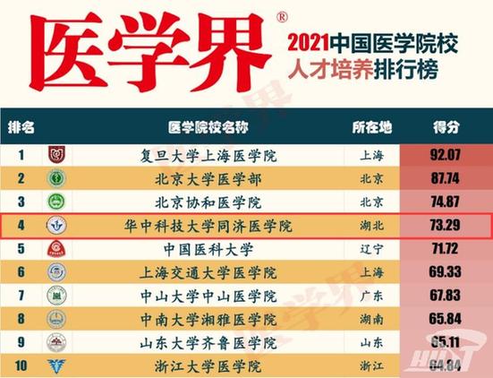 醫學界2021中國醫學院校人才培養排行榜位列第四