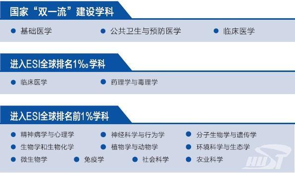—學科實力更雄厚。合校以來,醫學院聚焦“一流醫科”目標,充分發揮綜合性大學辦醫學教育的優勢,努力實施“強基礎、上水平、占高峰”發展戰略,整合優勢資源,聚焦學科前沿,強化學科交叉,厚植學科高原,打造學科高峰。目前,醫學院設有基礎醫學院、公共衛生學院、藥學院、醫藥衛生管理學院、護理學院、法醫學系、生殖健康研究所、口腔醫學院、3所直屬附屬醫院/臨床學院、7所非直屬附屬醫院/臨床學院。設有15個本科專業,10個博士學位授權一級學科,67個碩士學位授權點、64個博士學位授權點,6個博士后科研流動站;擁有國家重點學科9個,國家重點(培育)學科5個,國家臨床重點專科61個,臨床醫學、藥理學與毒理學進入ESI國際學科排名前1‰;全部12個醫學及相關學科進入ESI國際學科排名前1%,是全國同時擁有基礎醫學、臨床醫學、公共衛生與預防醫學三大“雙一流”建設學科的高校,綜合辦學實力穩居全國醫學院校前列。
