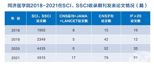 ——創新能力更強大。醫學院聚焦“四個面向”,主動對接國家戰略需求,瞄準國際醫學科技前沿,組織實施“醫+X”戰略,推進醫工醫理及基礎臨床學科交叉,強化有組織創新,啟動實施重點疾病研究中心建設計劃及研究型臨床醫師資助計劃,醫科科技創新能力進一步提升。改革開放以來,醫學院累計建有3個國家級科研基地,35個部省級重點科研基地,31個湖北省臨床醫學中心等;獲批國家基金委創新群體3個,教育部創新團隊6個,湖北省創新群體20個;榮獲國家三大科技獎20余項。合校以來,醫學院承擔國家“973計劃”項目、國家“863計劃”、國家科技支撐計劃項目、國家重大科技專項項目、國家重點研發計劃項目共計200余項,累計到賬科研經費近40億元。2017-2021年,連續5年獲批國家自然科學基金項目超過350項,位居全國醫科院校前列,醫科學者在國際四大醫學及CNS主刊及其子刊等國際高水平期刊發表研究論文呈現爆發式增加,被醫學科技界譽為“同濟現象”。