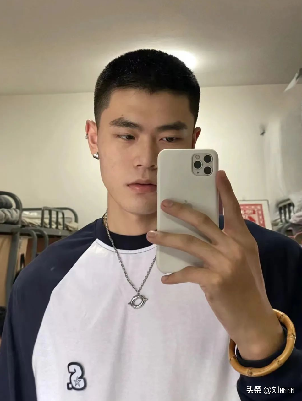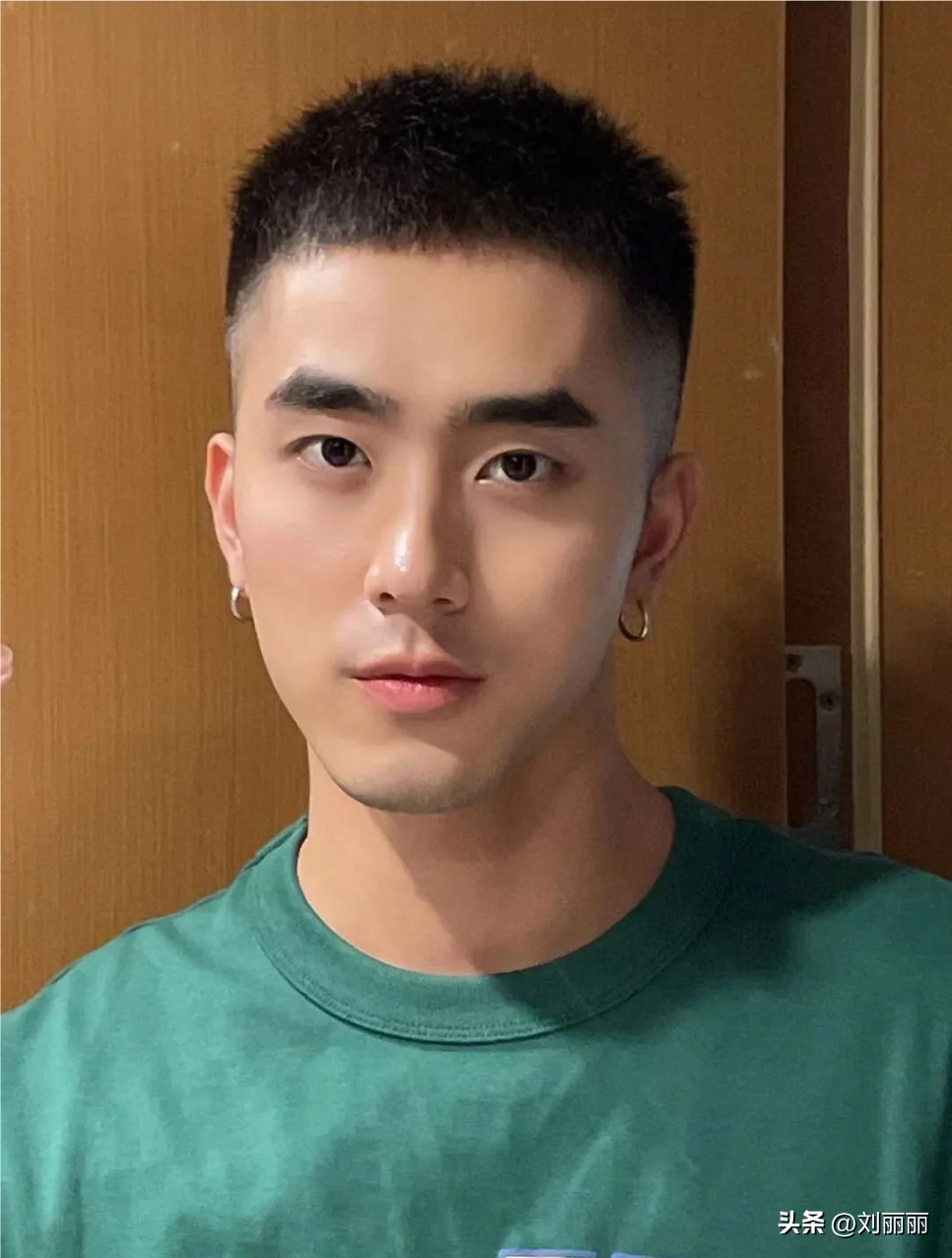 這種男士短寸頭,可以說既精神又帥氣,平常打理也很省事,洗洗頭就OK。