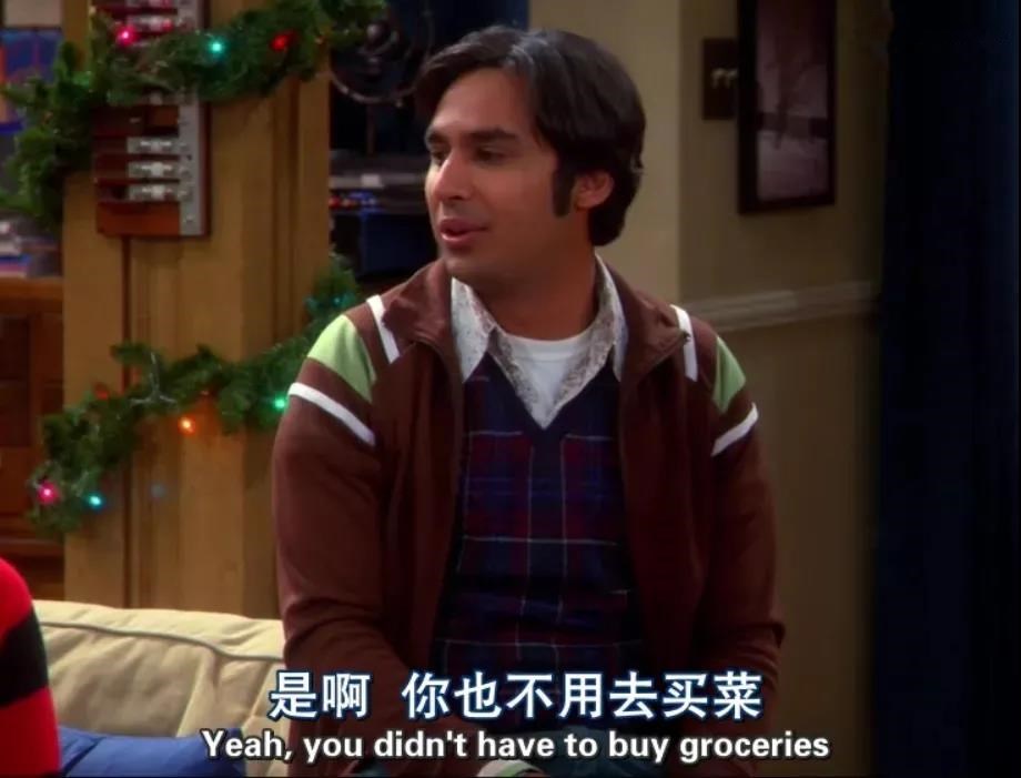 在美劇《生活大爆炸》中,大家討論Howard為什么不搬出去住時,就出現了這個表達: