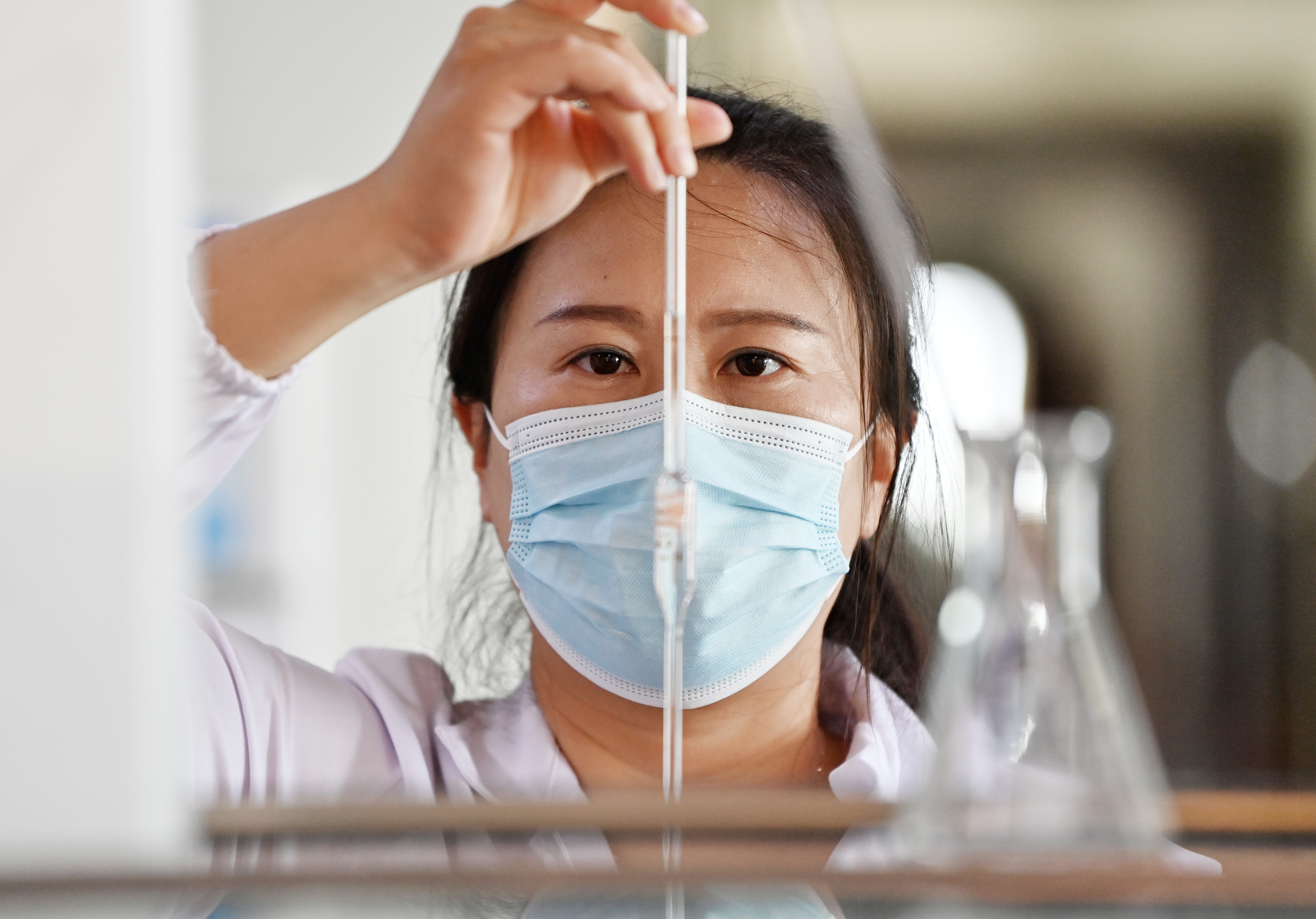 7月13日,天津渤海職業技術學院畢業生呂雙雙在實驗室工作。新華社記者李然攝