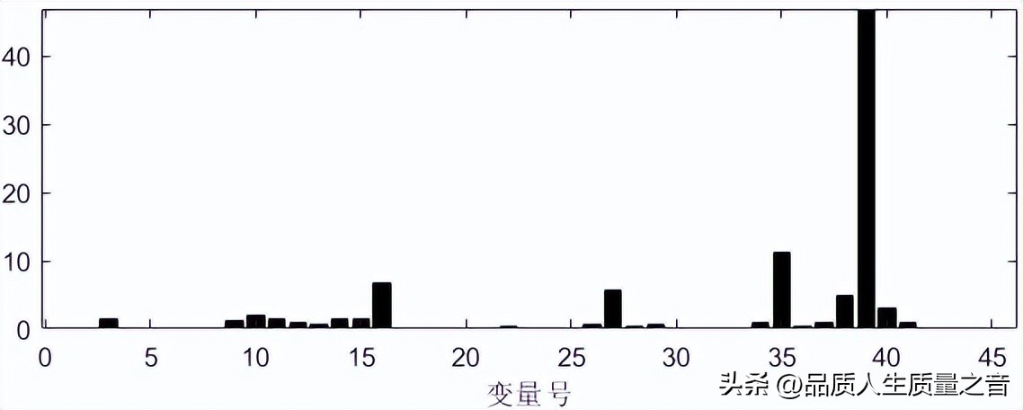 最后利用貢獻圖中各個變量對此次異常發生的貢獻程度去判斷是系統的哪些變量導致的異常的出現。由上圖可知生產系統本次出現異常主要是由第39個變量所導致的。