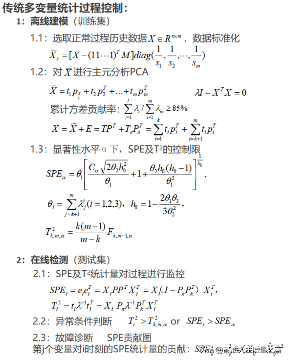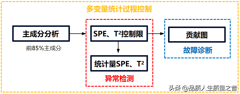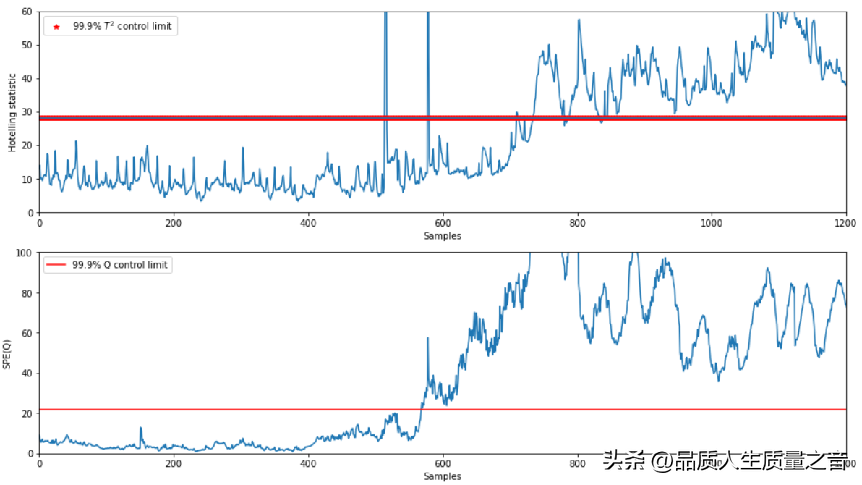 多變量統計過程控制通過統計量及控制限實時監測樣本的異常狀態來異常檢測,并根據貢獻圖來判斷出現異常的原因來實現故障診斷。