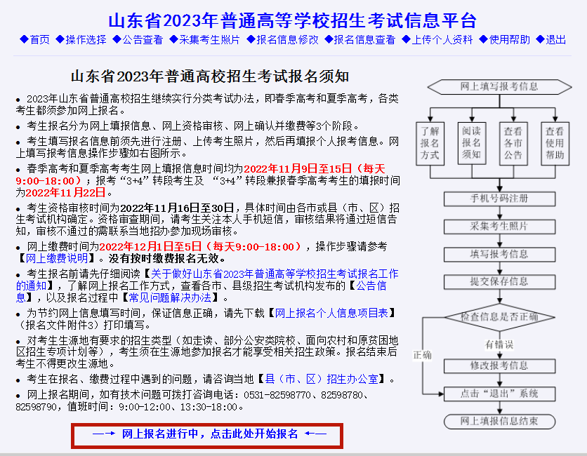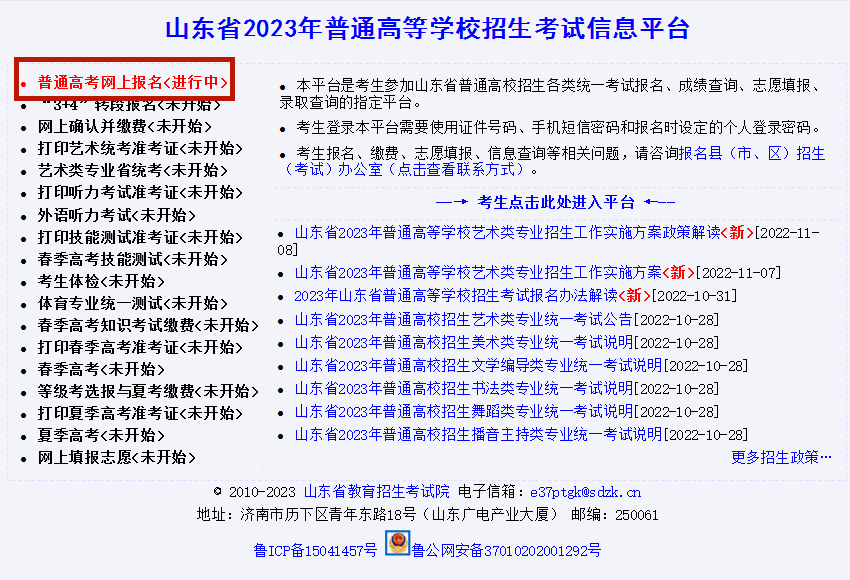 山東2023年高考報名已于今天(11月9日)上午9點正式開始。