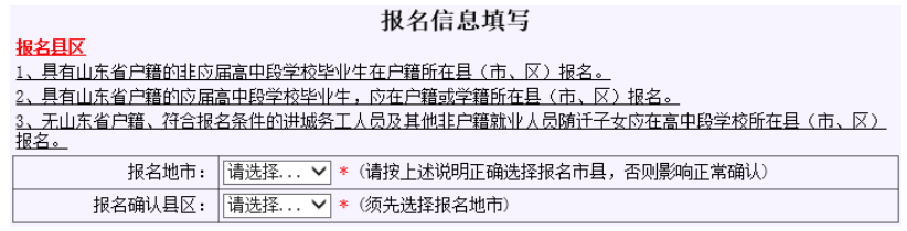問題現象:報名信息填寫或修改時,報名縣區、畢業學校中沒有選項可供選擇或者與選擇的戶口所在市三者不一致。
