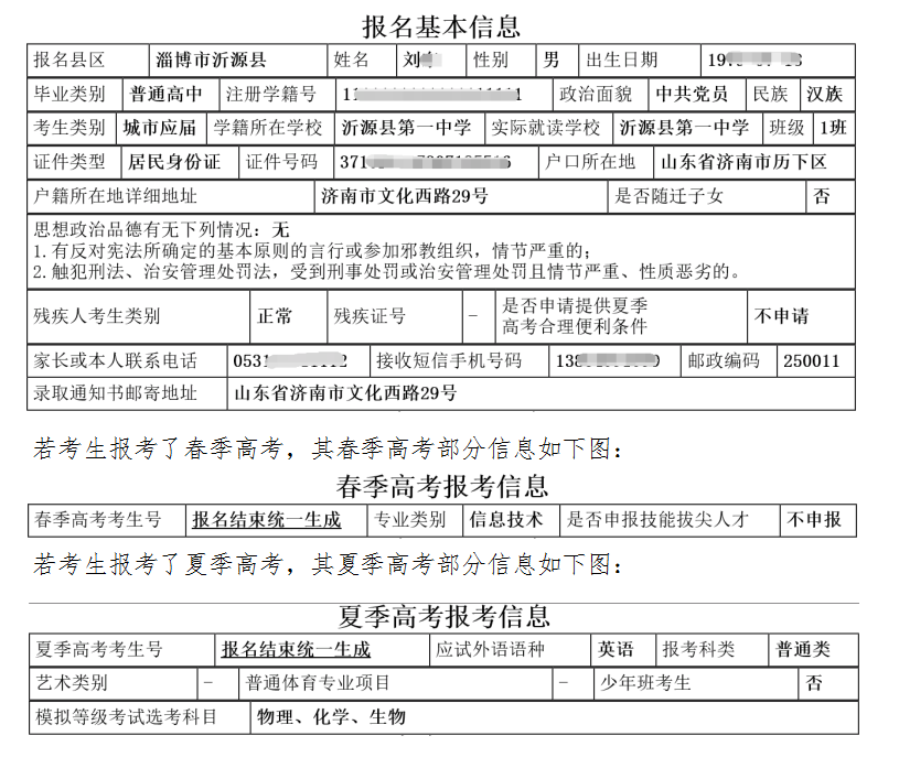 提醒:考生可以根據個人情況選擇報考春、夏季高考,其考試科目、考試地點均不相同,系統也給出了明確提示,請考生認真選擇,避免選錯影響信息確認。