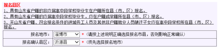請提醒考生正確選擇報名縣區,特別是提醒就讀學校駐地與戶口所在地不一致的考生,避免選錯、影響確認,甚至對錄取帶來一些想不到的后果。