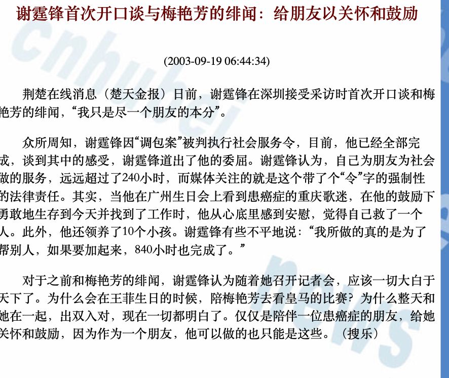 而謝霆鋒也公開表示真相大白,自己與梅艷芳并無私情。