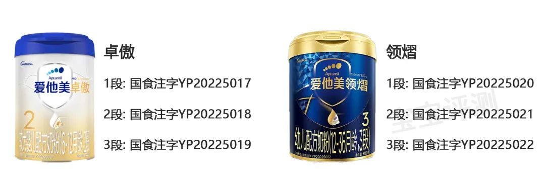 卓傲、領熠遵循“中國奶粉新國標”,產品包裝圖及各段的國食注字信息如下: