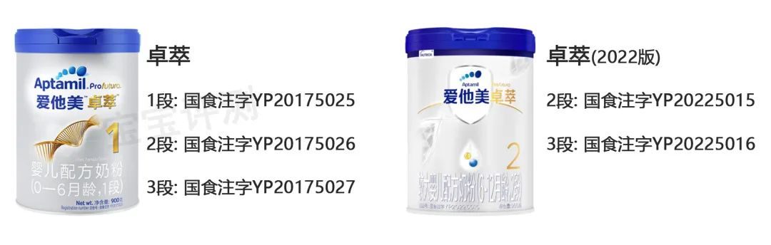 卓萃遵循“中國奶粉舊國標”,此前生產的可銷售至保質期結束。2段、3段在2022年更新過一次包裝,配方未變,市面上可能見到兩種包裝,具體情況如下: