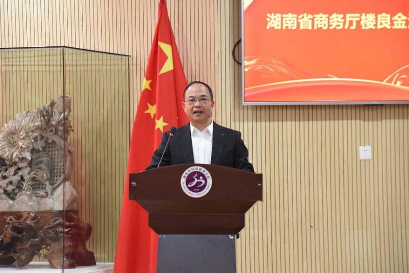 湖南省教育廳副廳長王仁祥,湖南省商務廳二級巡視員樓良金,湖南省對外友好協會副會長郭向麗,湖南省中非經貿合作促進研究會執行會長彭爭,湖南省教育廳職成處副處長劉彥奇,湖南省中非貿易合作促進研究會秘書處辦公室主任王毅,安哥拉中國總商會副會長李建軍,安哥拉湖南總商會會長鄭長華蒞臨現場,見證了這一“高光時刻”。湖外董事長寧平,副董事長寧翔,執行校長肖建安,紀委書記任征,副校長曾亞,黨委副書記付興華,校長助理趙慧敏、曹楊、劉文峰、高嘉慶等校領導出席活動。儀式由高嘉慶校長助理主持。