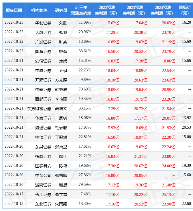 證券之星數據中心根據近三年發布的研報數據計算,中泰證券韓筱辰研究員團隊對該股研究較為深入,近三年預測準確度均值為79.6%,其預測2022年度歸屬凈利潤為盈利18.05億,根據現價換算的預測PE為12.32。