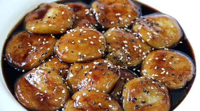 5、 等到湯汁被糯米餅完全吸收以后就可以出鍋了,最后撒上一些芝麻,口感更香。