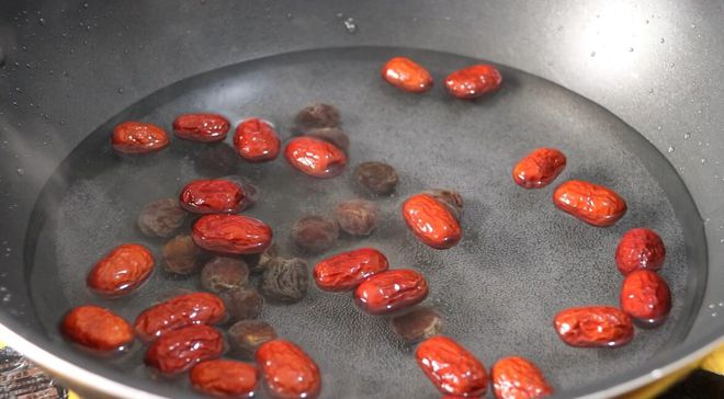 1、 桂圓剝去外殼,跟紅棗、枸杞全部用水清洗干凈。