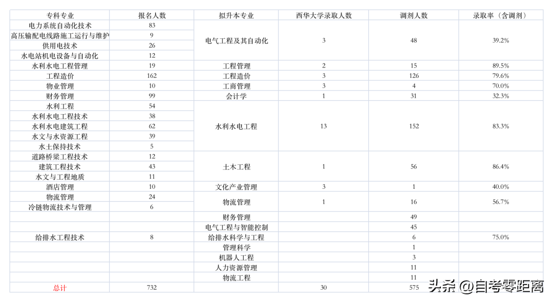 電力工程學院、建筑工程學院除建筑室內設計專業、水利工程系、管理工程系、資源環境工程系除環境類專業2022屆全日制普通專科畢業生“專升本”對口本科學校為成西華大學。報名西華大學有732人,錄取605人(不包含調劑數據),錄取率為:82.7%