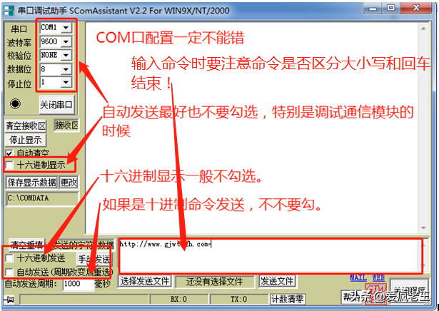 其實在我們日常工作學習中經常用的是第三方軟件來調試或者配置硬件設備,比如用串口調試助手等軟件,下面我來介紹一下利用串口調試助手的使用,其實串口調試助手使用非常簡單,從網上下載串口調試助手圖一所示,解壓后就可以打開如圖二所示。幾個注意事項如圖三所示。