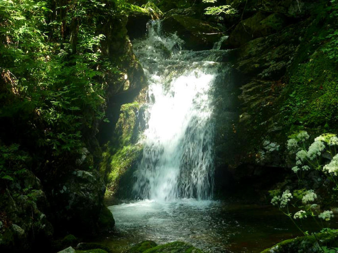 譯文:在極高的山峰上,生長著許多奇形怪狀的柏樹,在山峰之間,常有懸泉瀑布飛流沖蕩。
