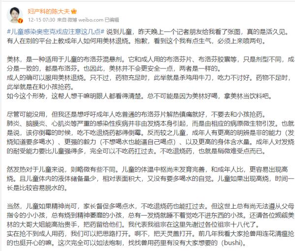 “美林是新冠里,成人最好的退燒藥”