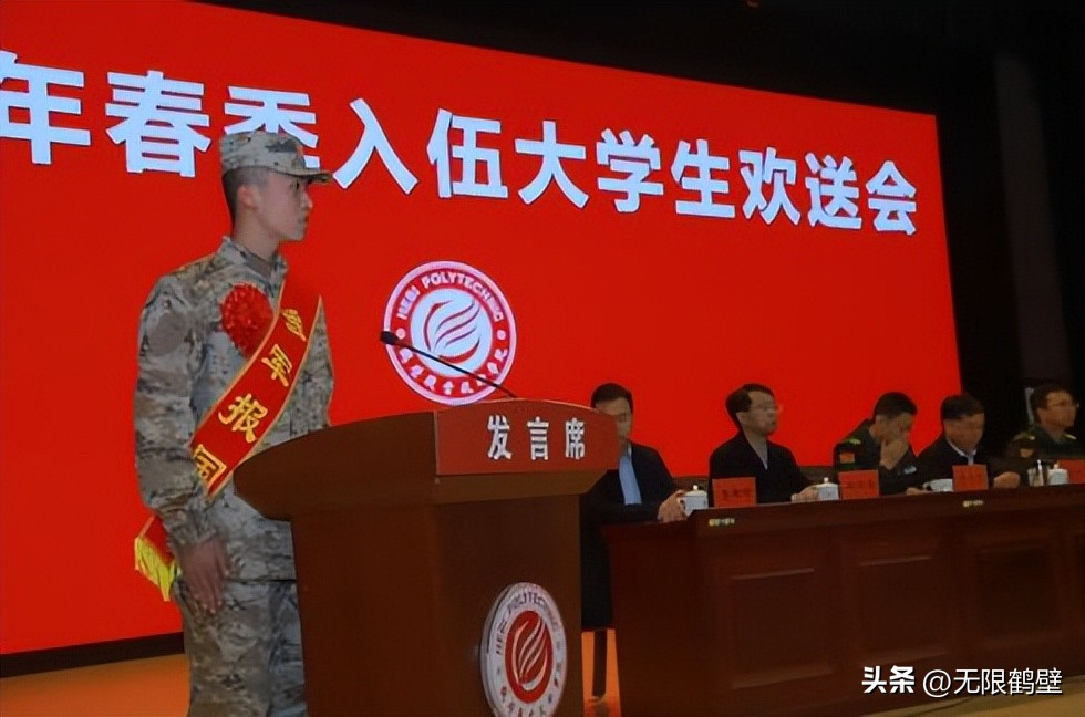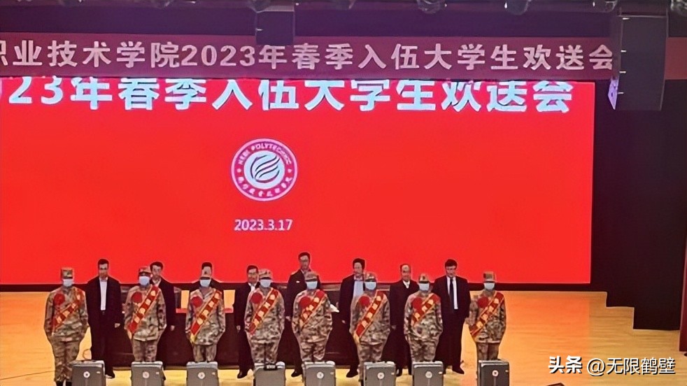 鶴壁職業技術學院校領導與入伍大學生代表合影留念
