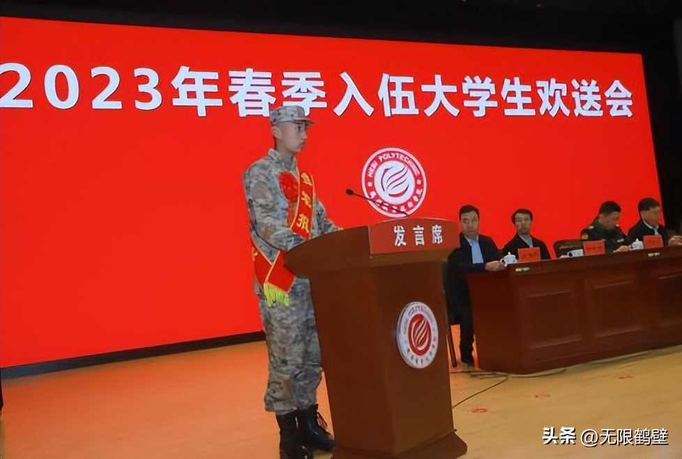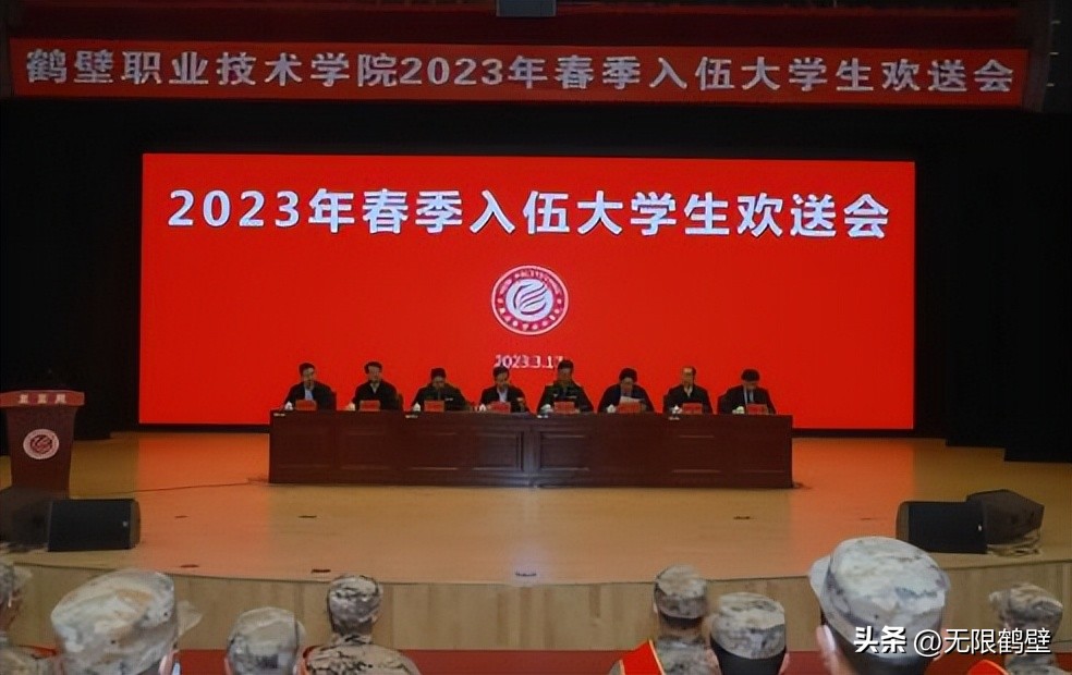 3月17日下午,鶴壁職業技術學院2023年春季入伍大學生歡送會在學校誠信禮堂舉行。鶴壁軍分區動員處上校處長張磊、淇濱區人武部上校政委李文升,鶴壁職業技術學院校長蔡太生、黨委副書記趙勇、副校長楊長春、副校長王在尚、紀委書記唐保峰、組織部長韋博出席歡送會。各二級學院黨總支負責人、學工辦負責人、征兵聯系人、部分輔導員代表、武裝部全體人員以及入伍大學生代表參加活動。歡送會由黨委副書記趙勇主持。