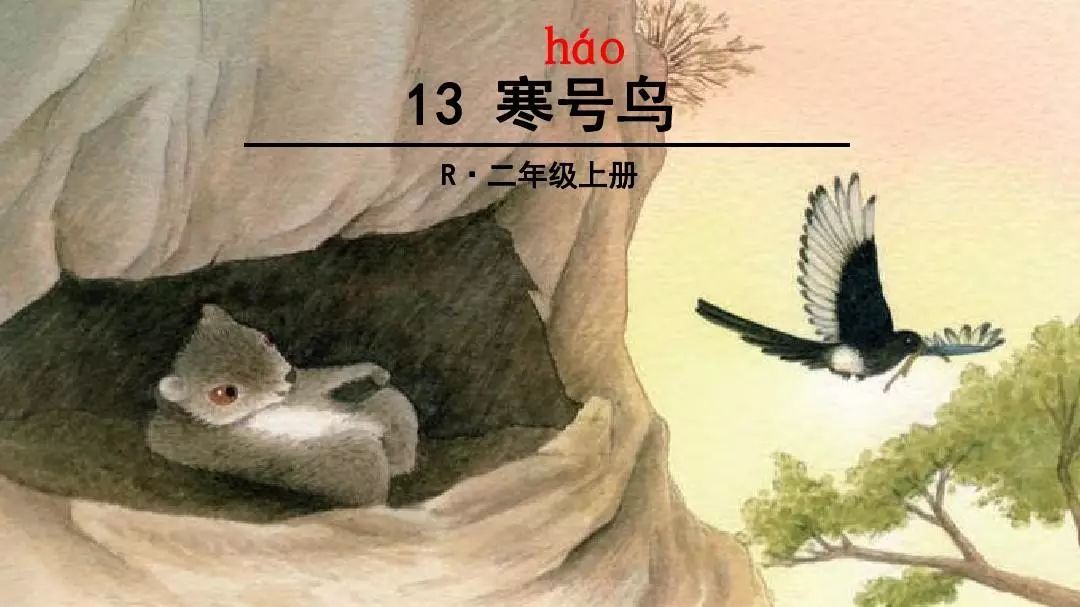 山腳下有一堵石崖,崖上有一道縫,寒號鳥就把這道縫當作自己的窩。石崖前面有一條河,河邊有一棵大楊樹,楊樹上住著喜鵲。寒號鳥和喜鵲面對面住著,成了鄰居。