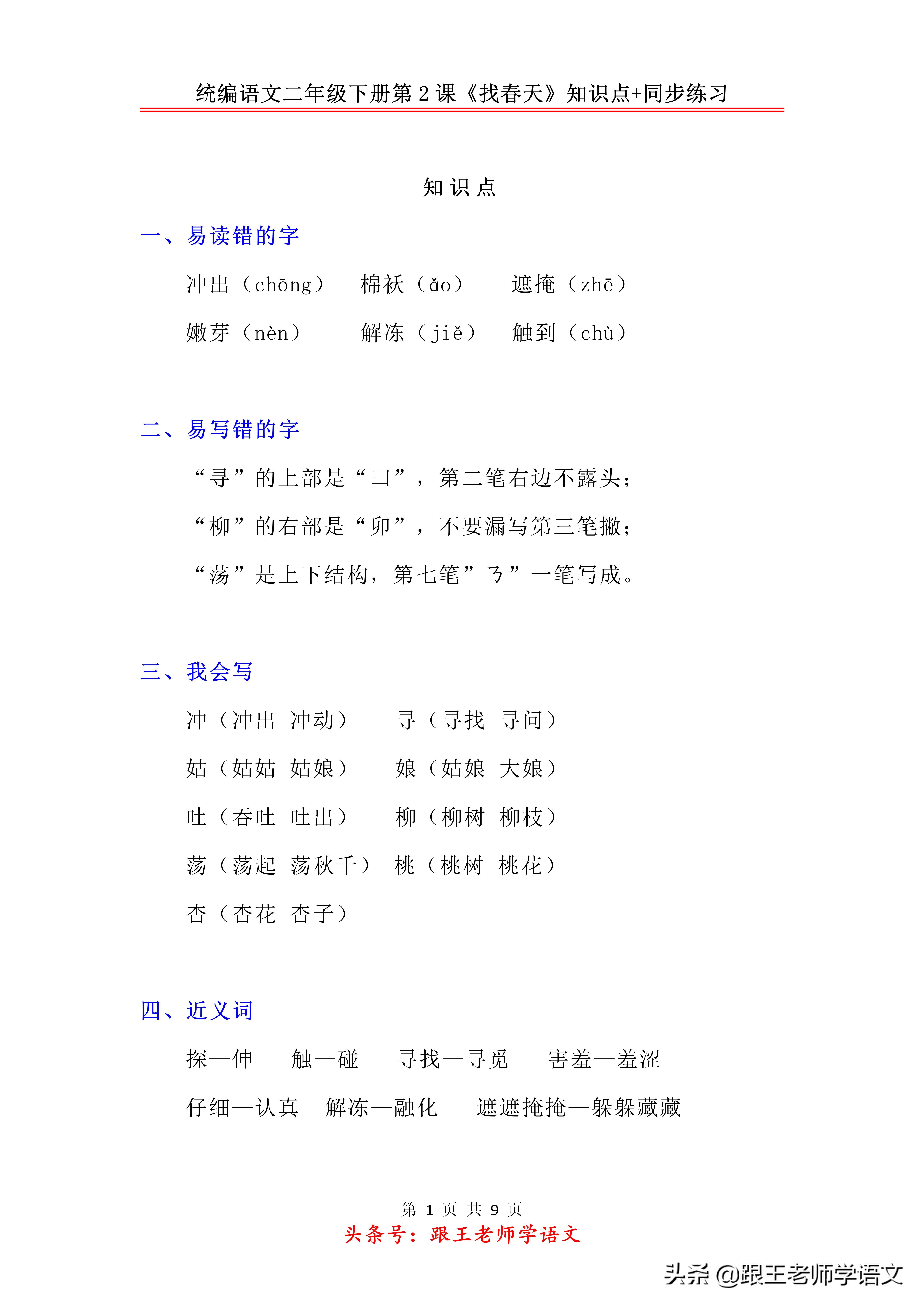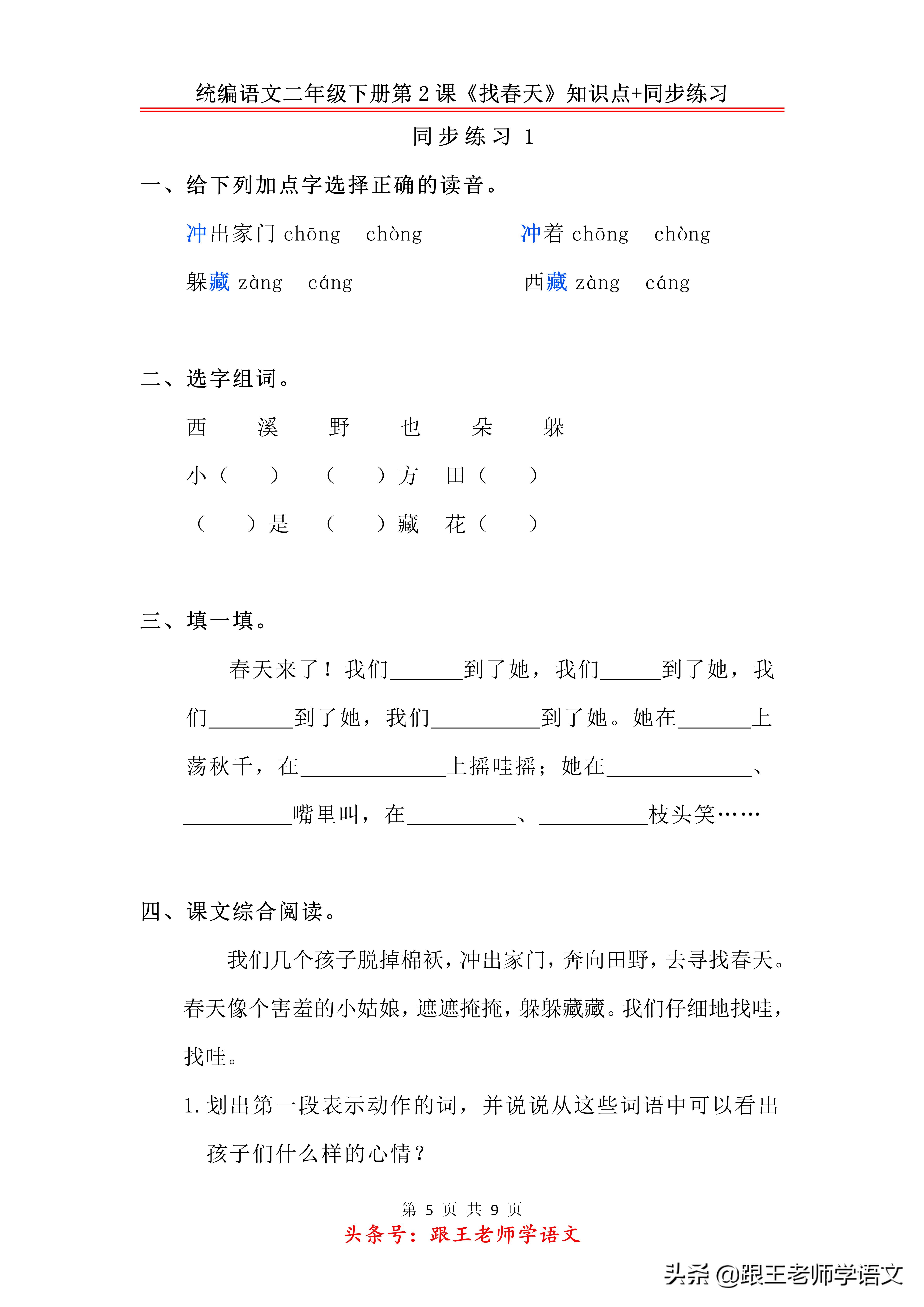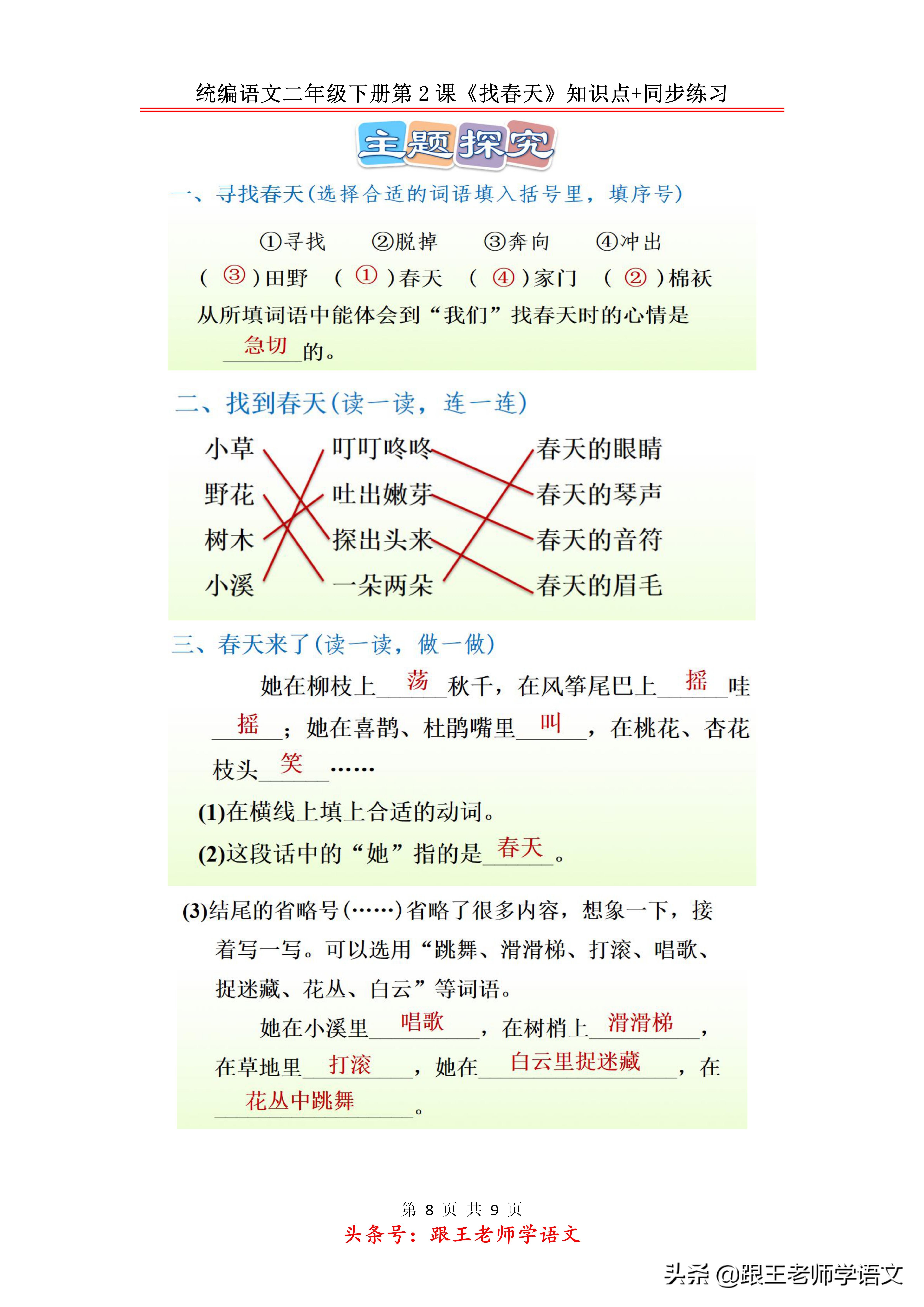 統編語文二年級下冊第2課《找春天》知識點+同步練習