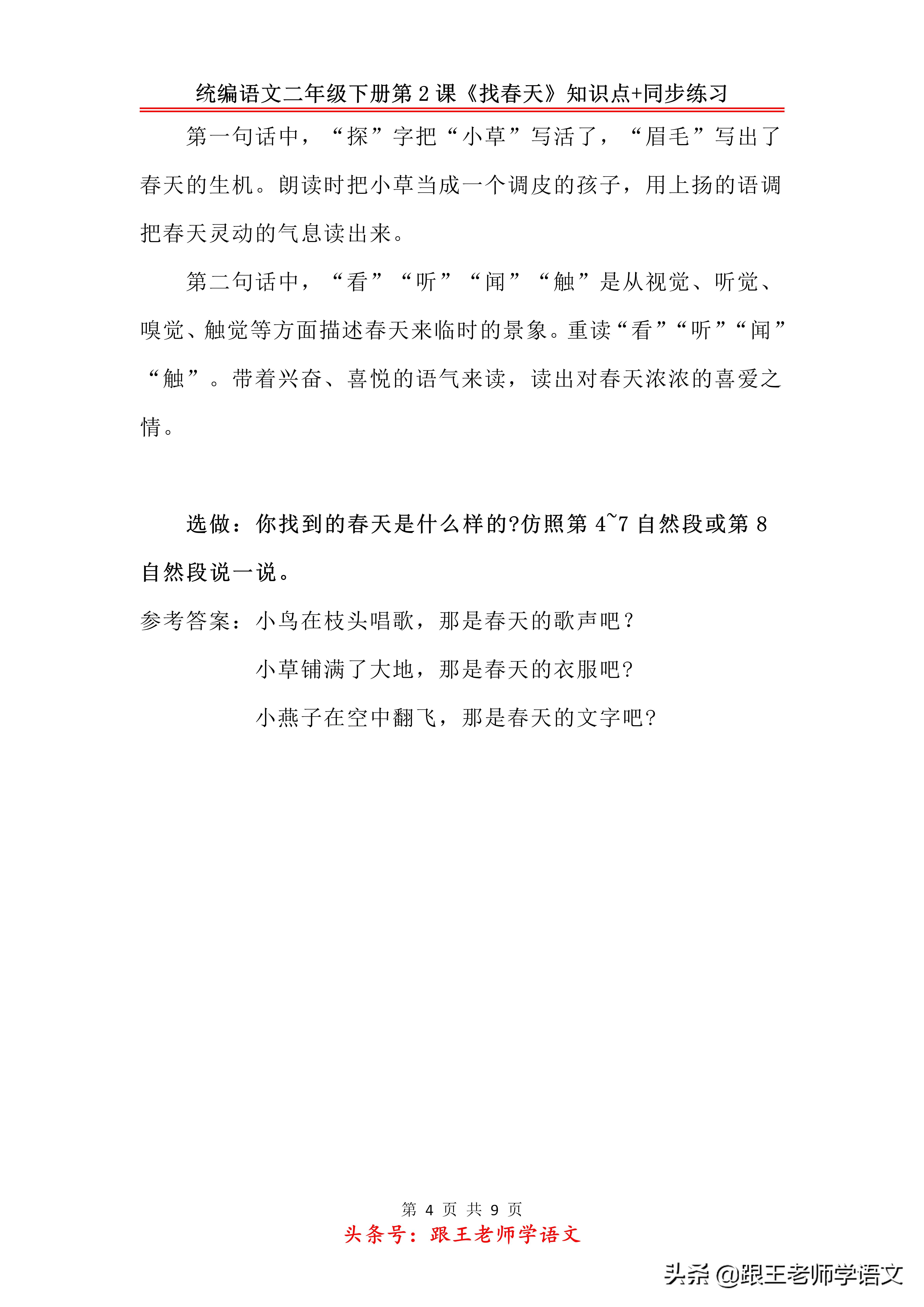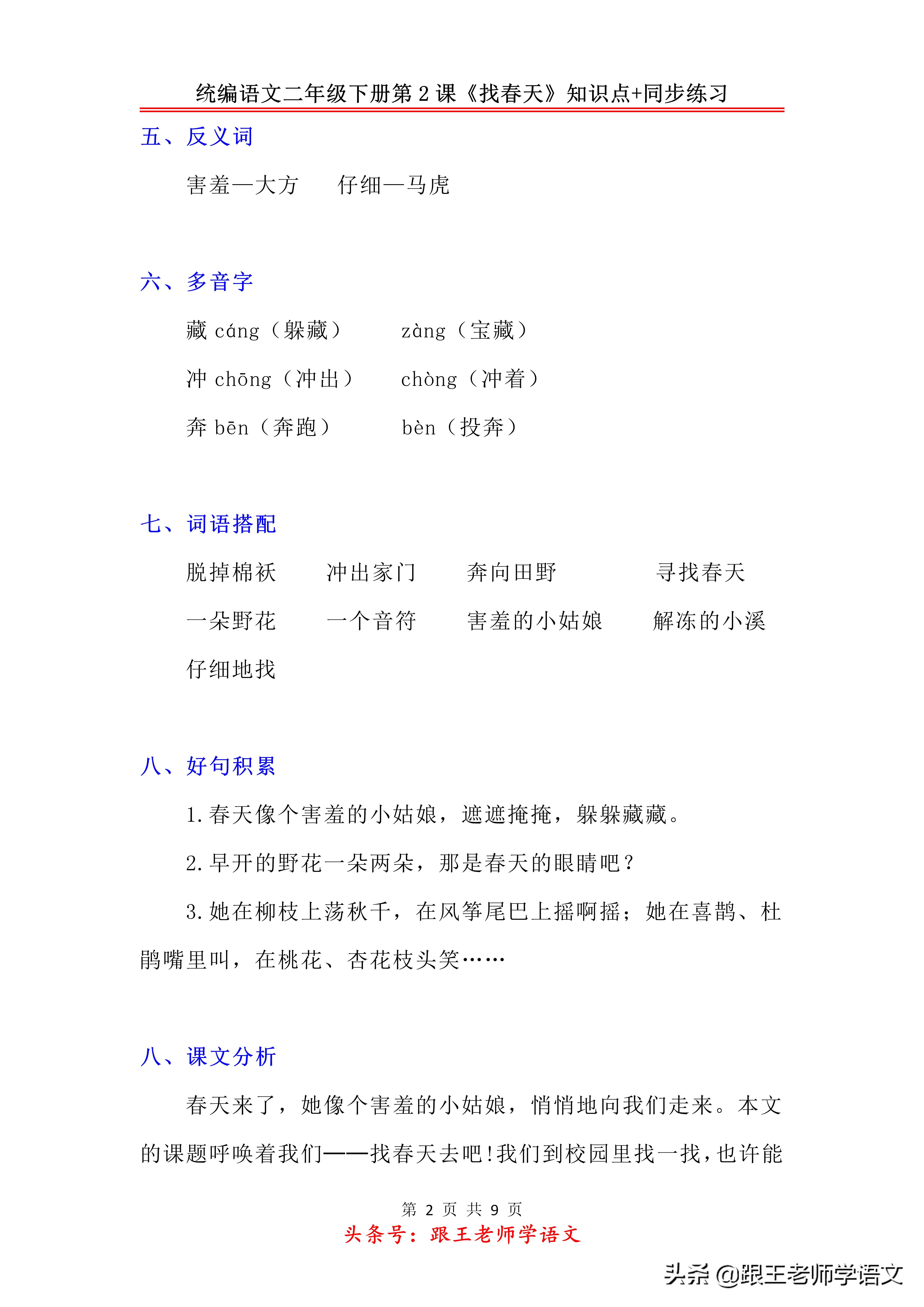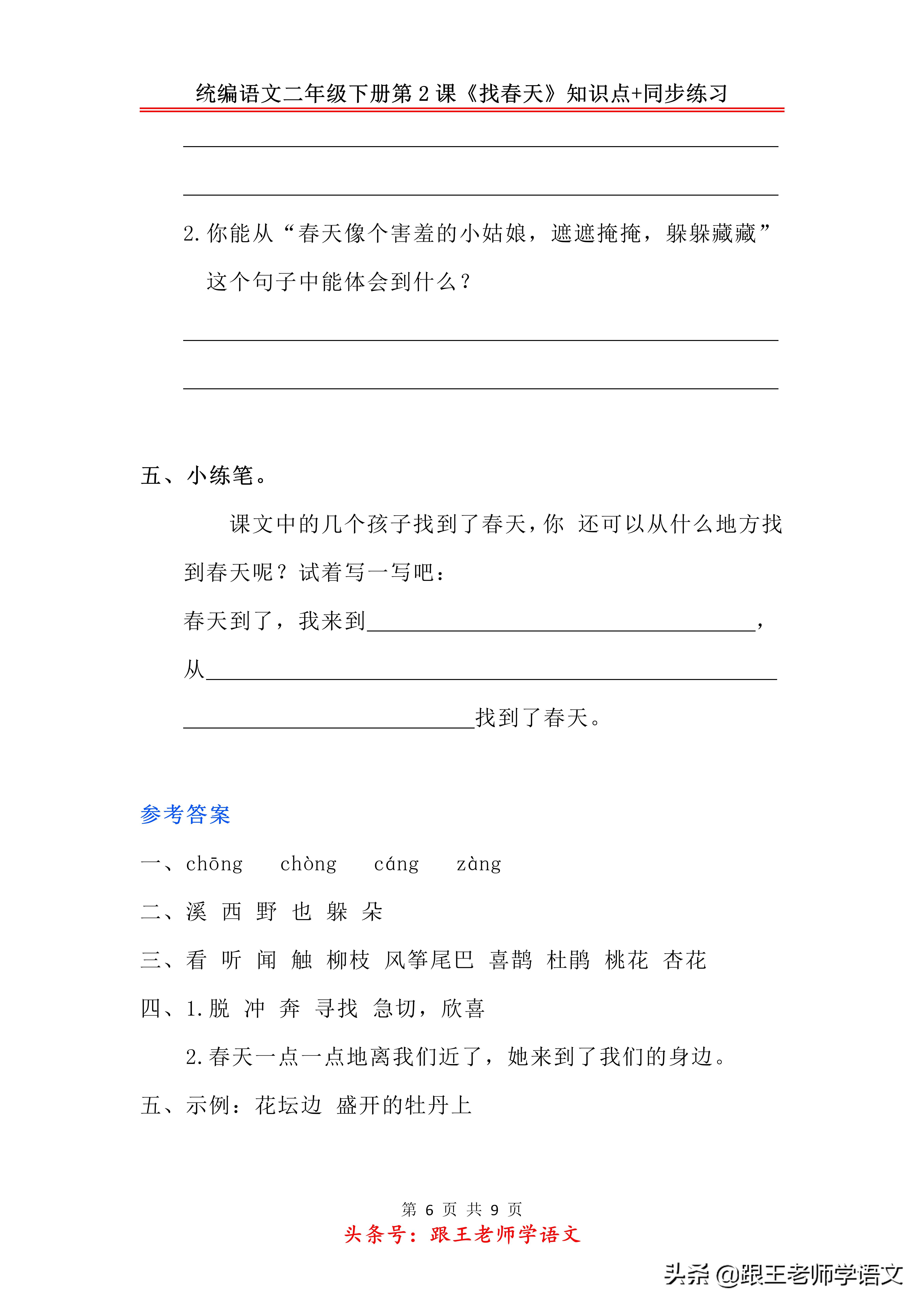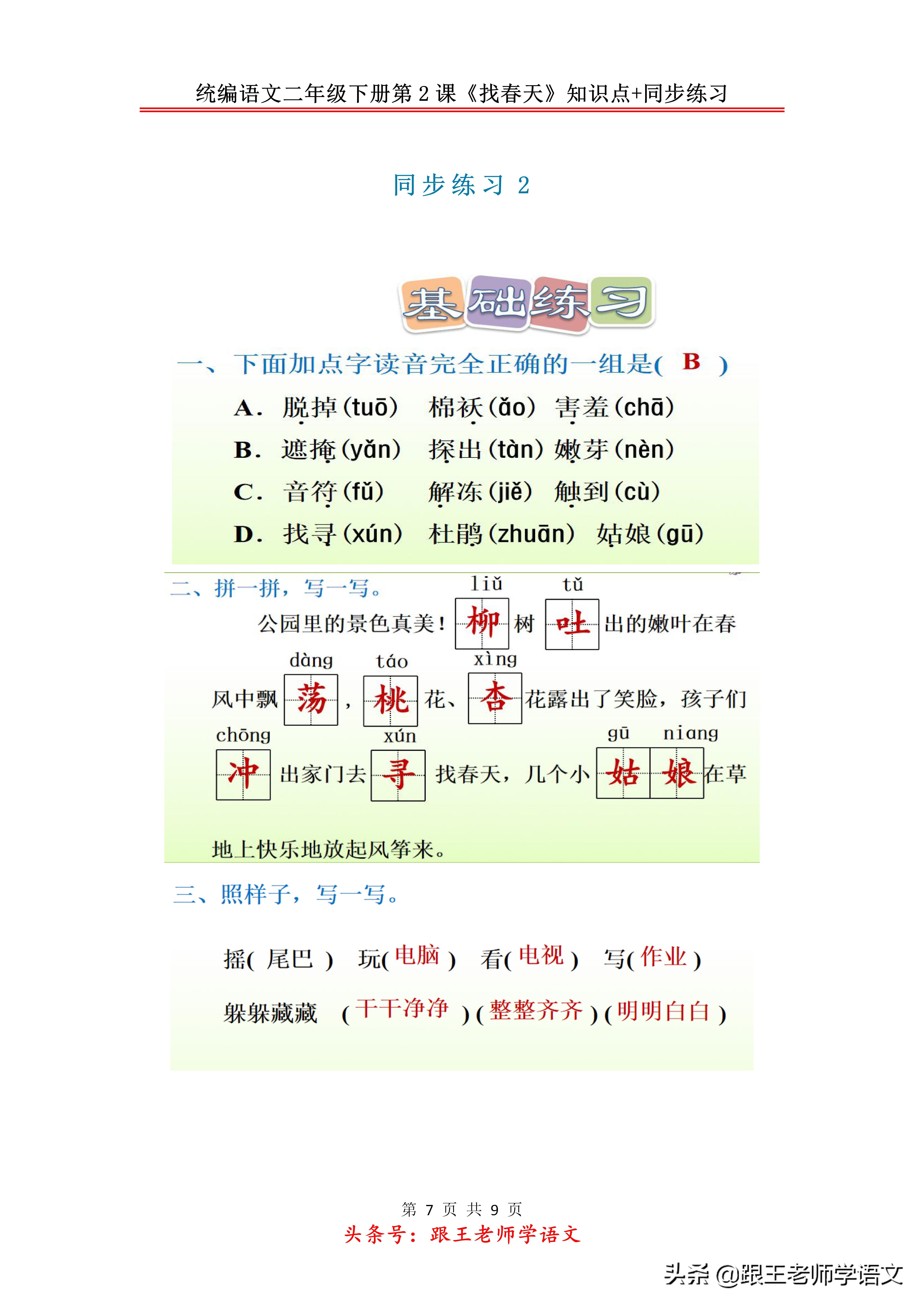 統編語文二年級下冊第2課《找春天》知識點+同步練習