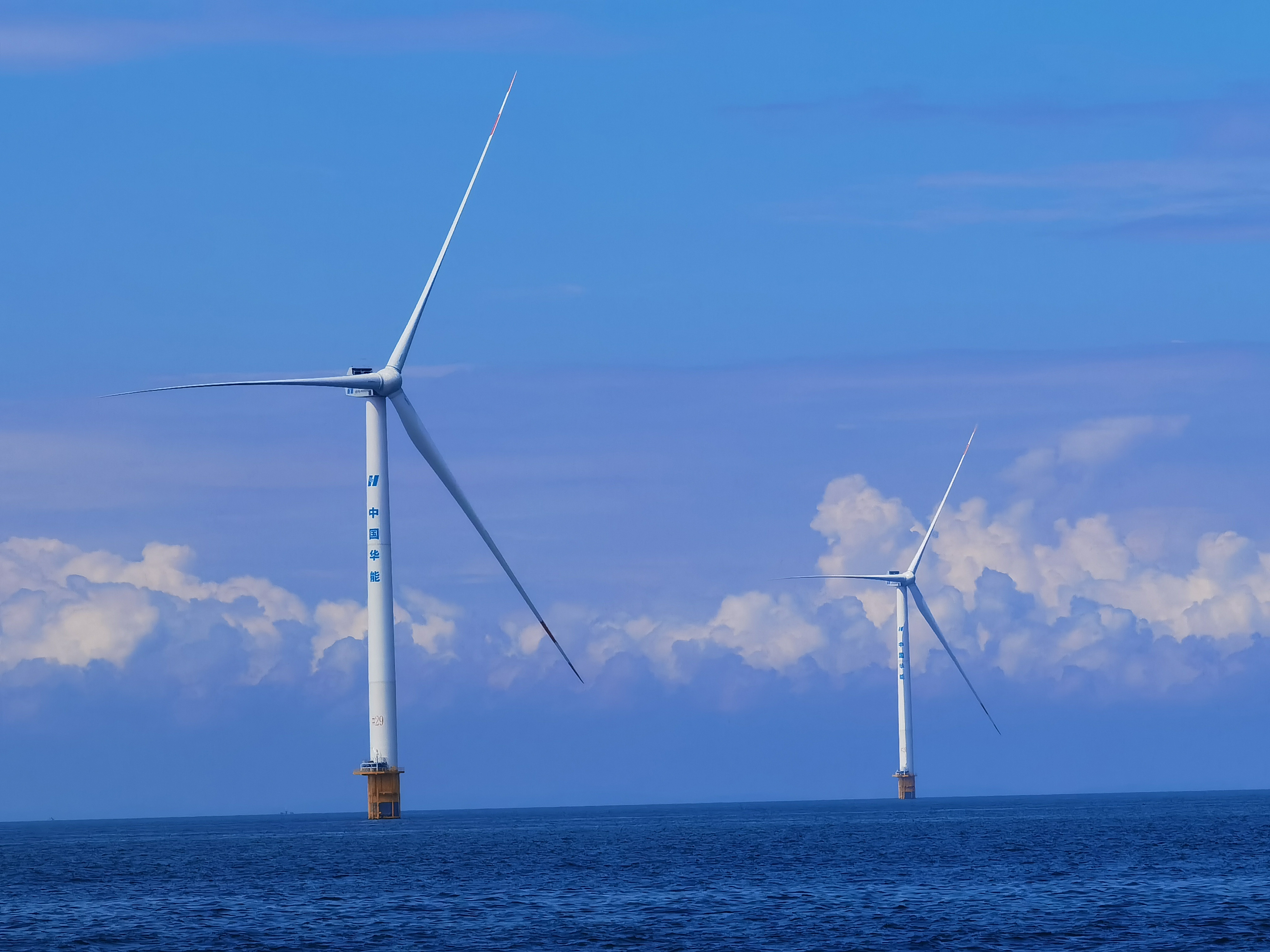 黃海之上,300多座高約百米的“大風車”傲然聳立,巨大的風電機組葉片不停轉動。這是并網不久的中國華能集團大連莊河海上風電場址項目,也是我國北方單體容量最大的海上風電項目,預計年上網電量可達17.3億千瓦時。