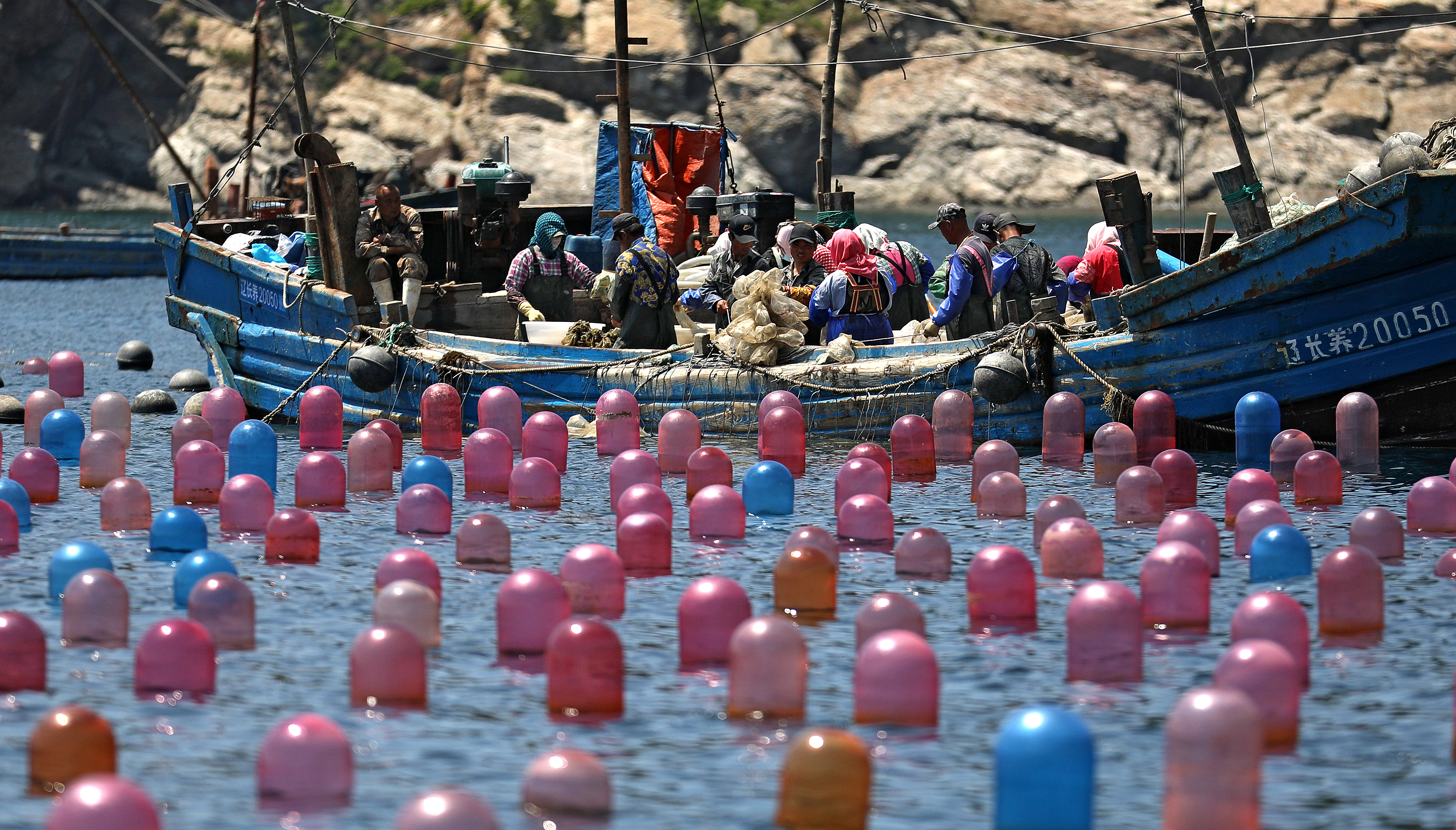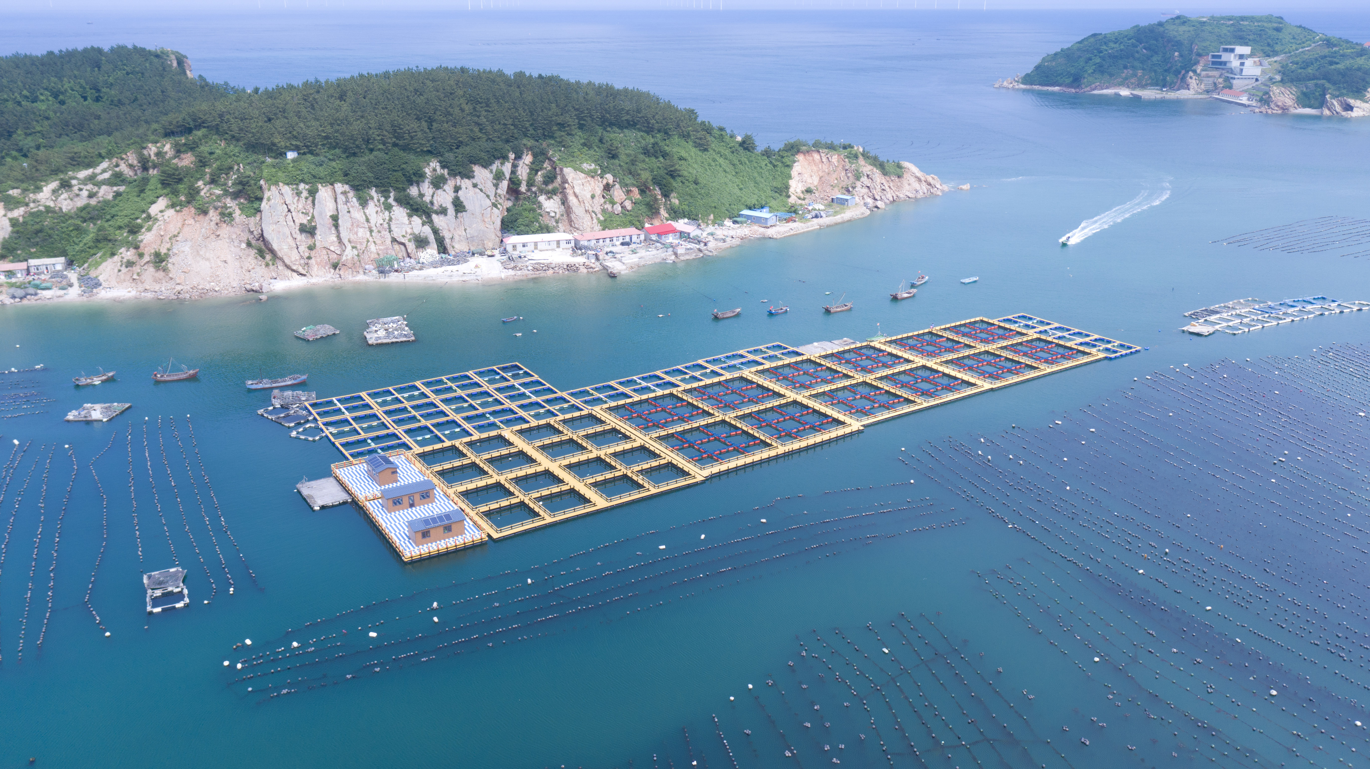 在黃海深處的大連市長海縣,馬達聲中,漁民駕著小船,帶著記者駛向深海。黛藍色的海面上,浮筏和網箱一字排開,看不到邊際。這些密布的網箱是當地海洋牧場中的智能化深海魚類生態養殖網。
