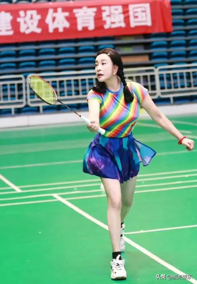 她在社交平臺上,曬出了自己打羽毛球的照片,并配文到: