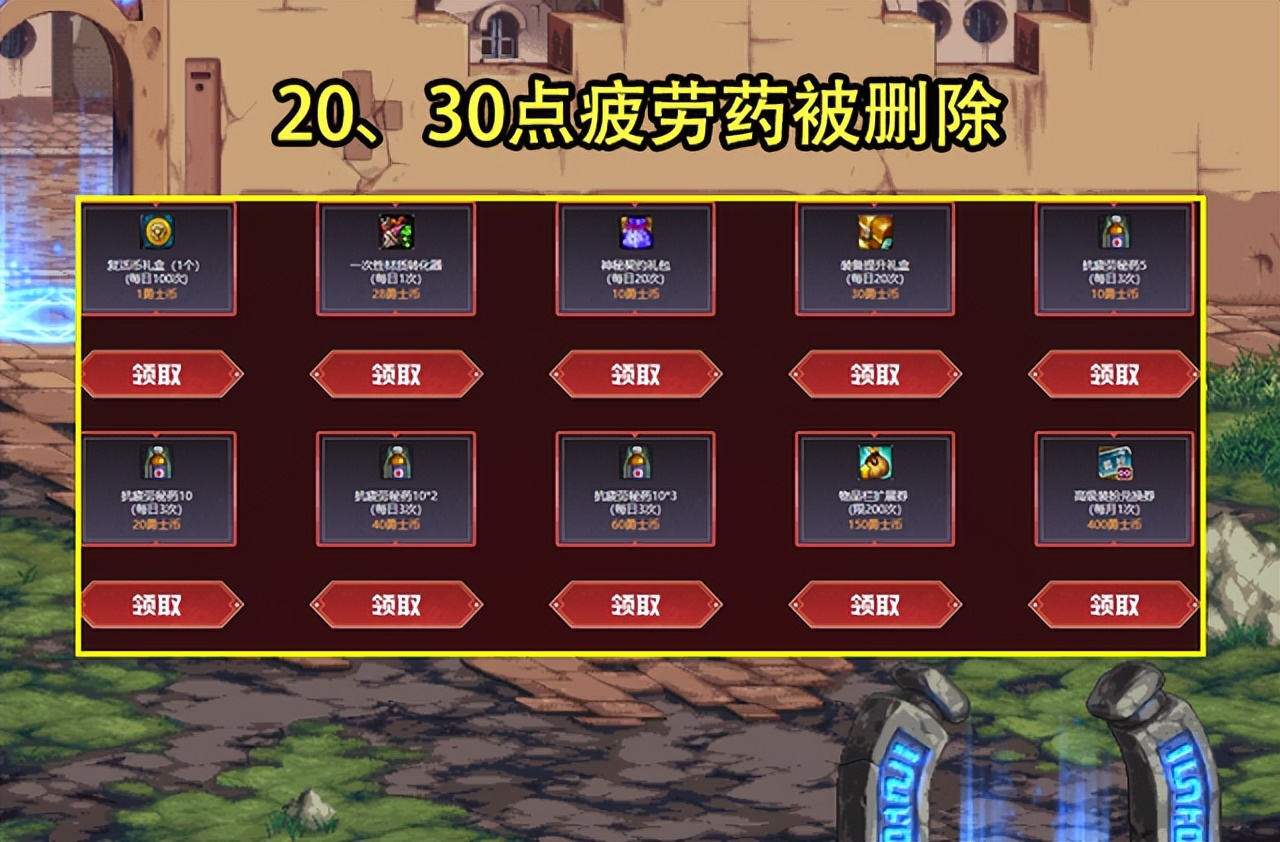 不過在心悅俱樂部維護后,“充值返利”可兌換的疲勞藥卻遭到暗改了!原本疲勞藥有5點、10點、20點、30點這4種類型,但是在維護后20點和30點的疲勞藥卻被刪除了,換成了3種10點疲勞藥。
